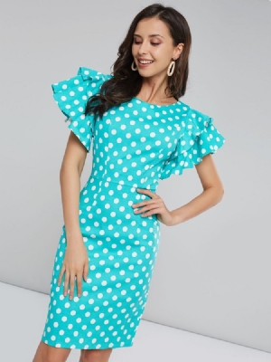 Polka Dots Petal Sleeve Knälång Bodycon-klänning För Kvinnor