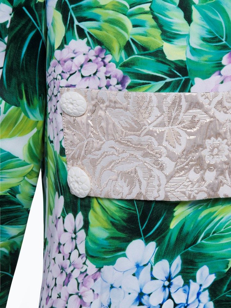 - Utsmyckningar: lapptäcke, knapp, ficka, tryck
