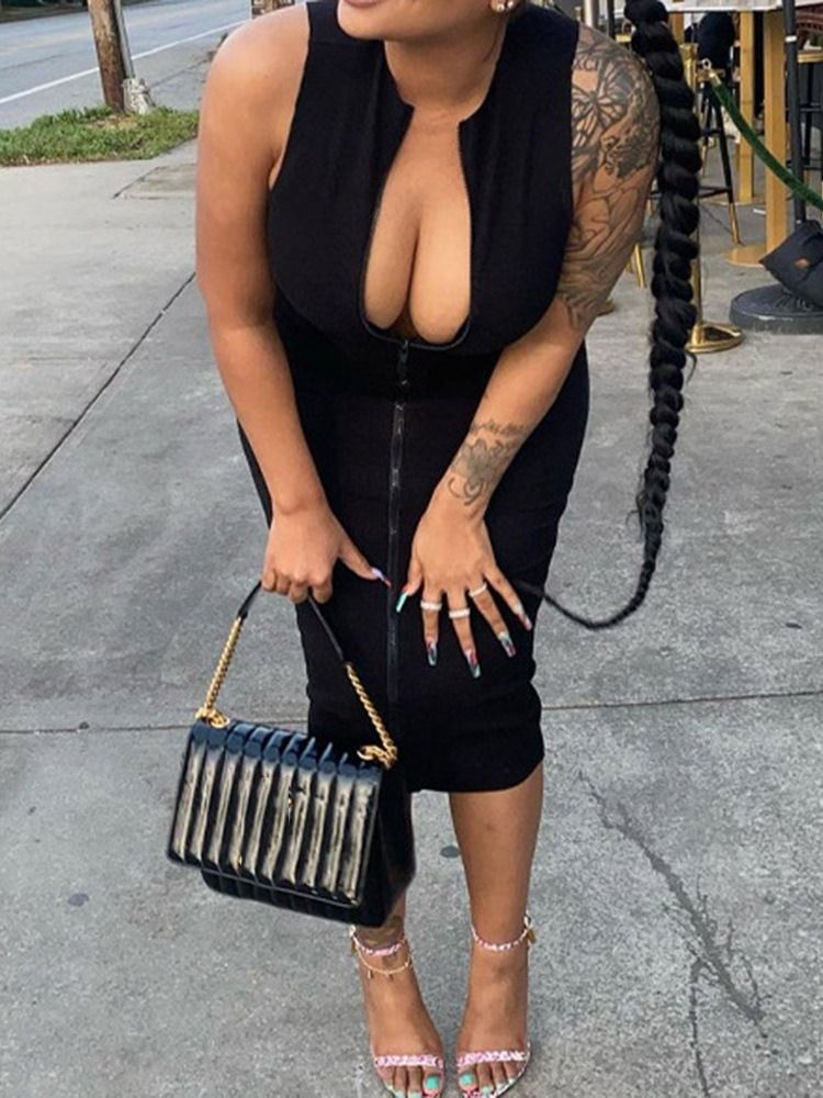 Ärmlös Dragkedja Med Dragkedja Mittkalv Dragkedja Vanlig Bodycon-klänning