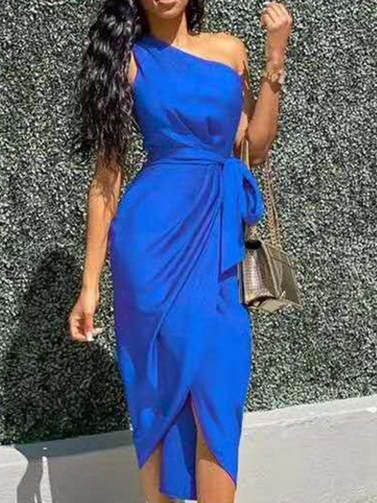 Ärmlös Ärmlös Midkalva Asymmetrisk Asymmetrisk Höstklänning