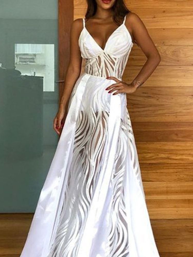 Ärmlös V-ringad Genomskinlig Tröja Vanligt Klänning För Kvinnor