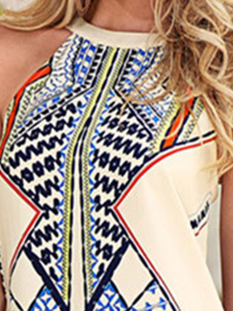 Afrikanskt Mode För Kvinnor Rak Rund Hals Över Knäklänningen