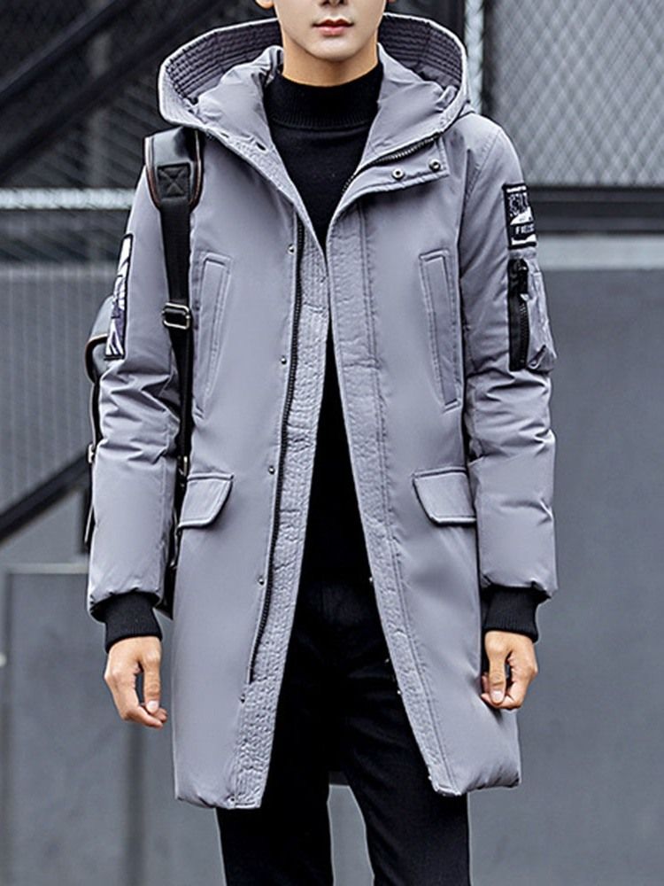 Applikationer Color Block Dragkedja Koreansk Dunjacka För Män