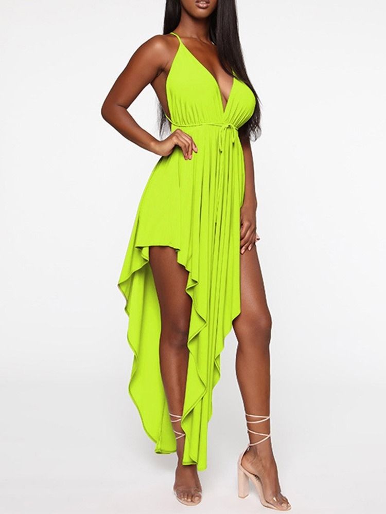 Asymmetrisk Ärmlös V-ringad Sexig Rygglös Klänning För Kvinnor