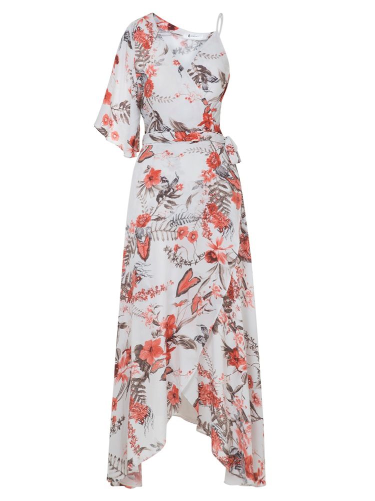 Asymmetrisk Maxiklänning Med En Axel Och Halv Ärm