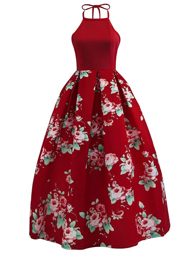 Backless Ankle-length Sleeveless Expansion Fall Damklänning