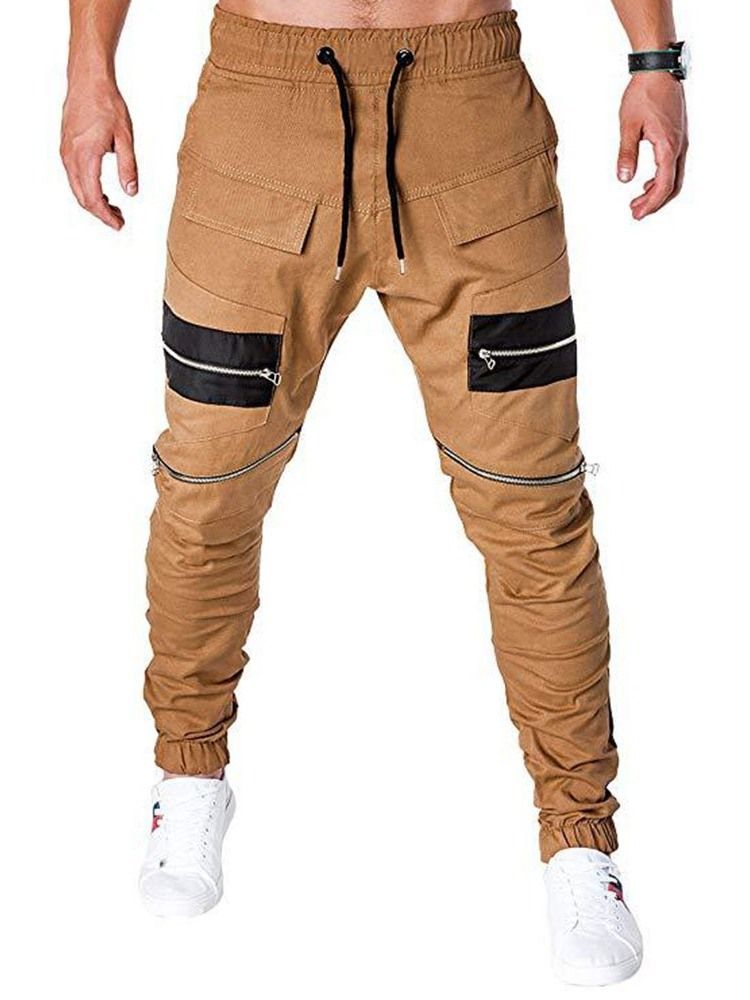 Blixtlås Färgblock Snörning Låga Midja Casual Byxor