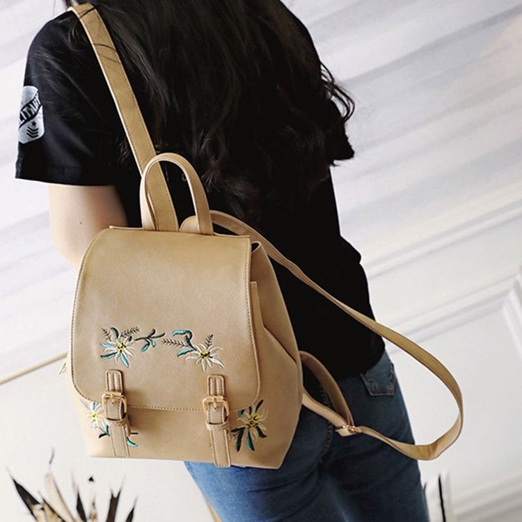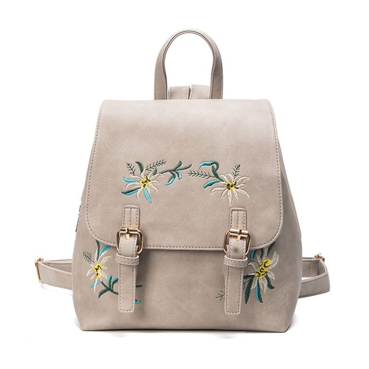 Blommiga Pu-bältdekorerade Ryggsäckar