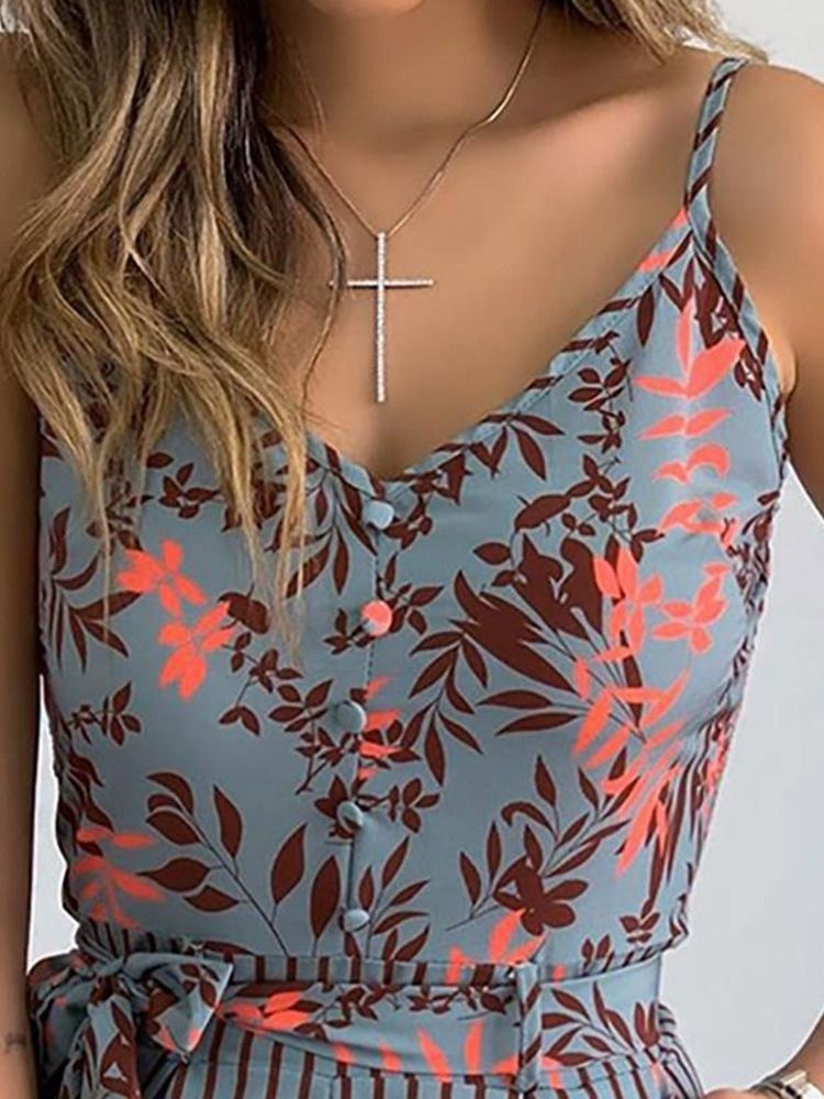 Blommigt Västtryck Med Smala Brett Ben För Kvinnor