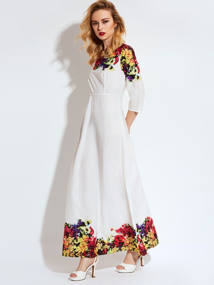 Blomtryck För Kvinnor3 4 Längdärmar Expansion Maxiklänning
