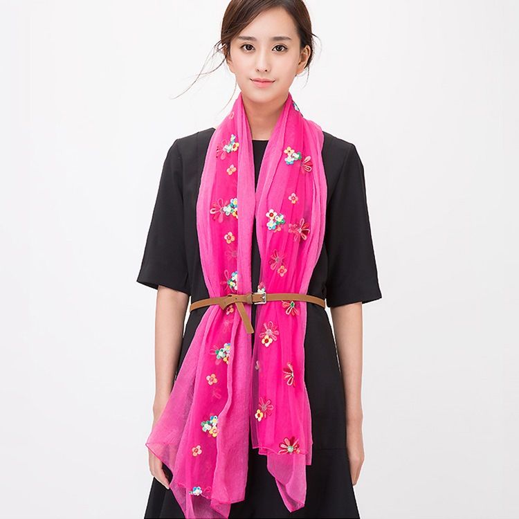 Broderi Chiffong Långa Kvinnors Halsduk Många Färger