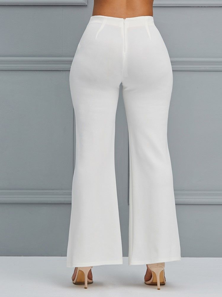 Button Office Lady Wide Legs Byxor För Kvinnor