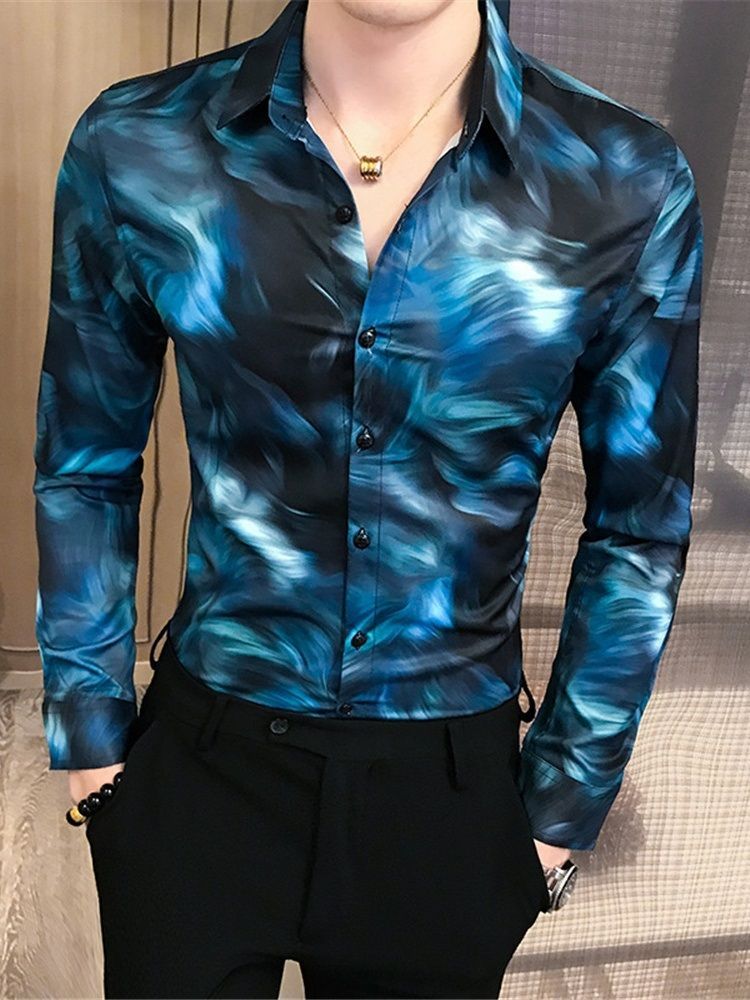 Casual Print Lapel Singel-breasted Herrskjorta