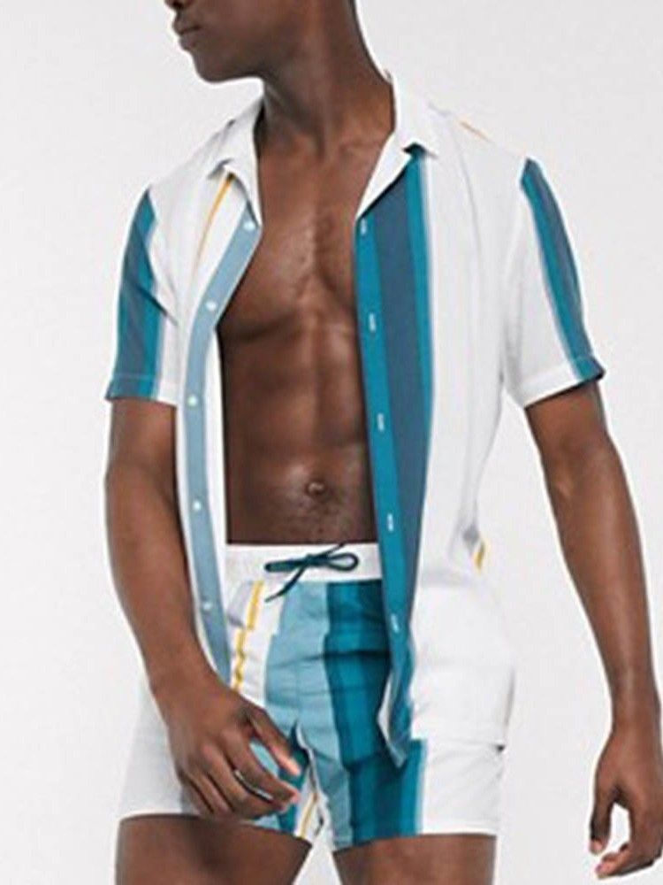 Casual Strip Lapel Single-breasted Men's Slim Shirt