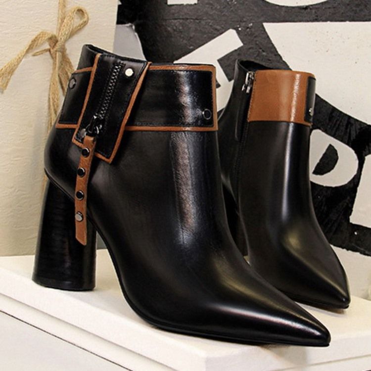 Chunky Heel Pointed Toe Color Block Damstövletter