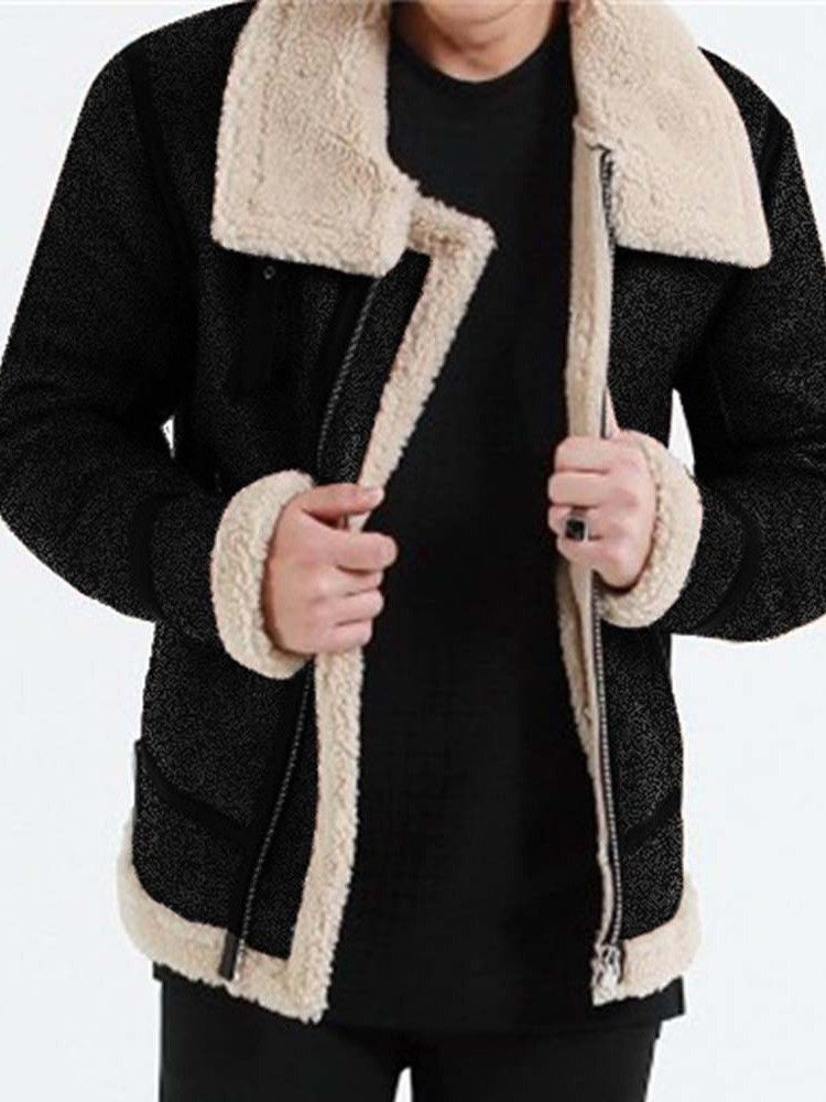 Color Block Konstgjord Fleece Patchwork Europeisk Vinterjacka För Män