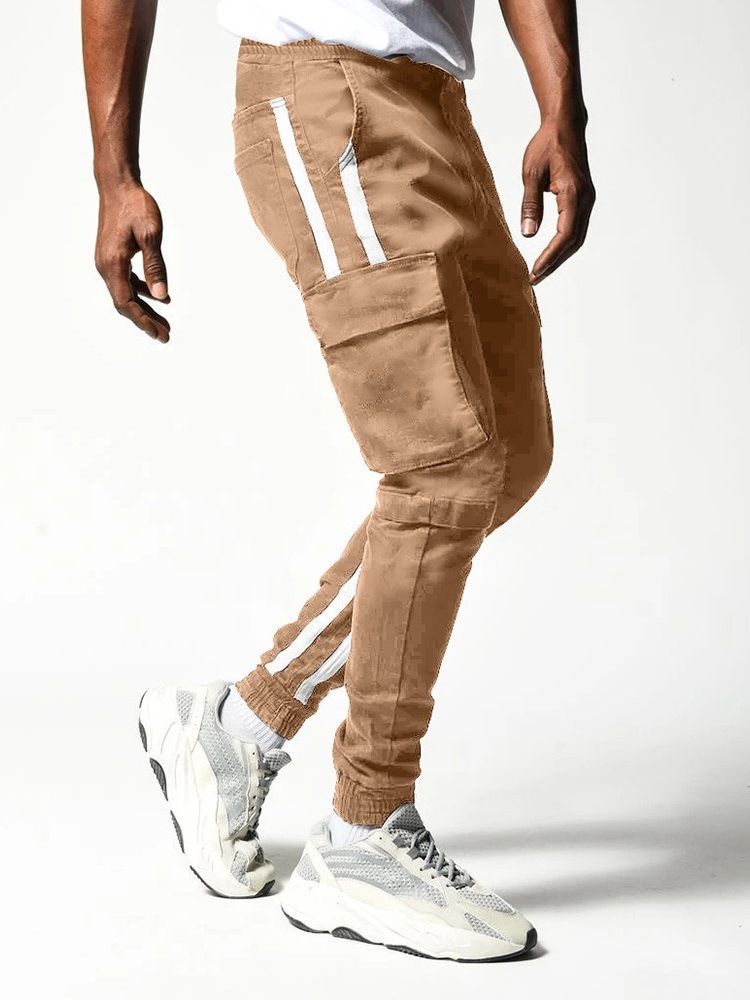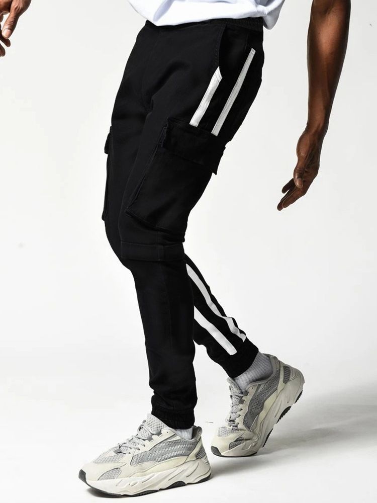 Color Block Pencil Pants Patchwork Sports Mid Waist Casual Herrbyxor