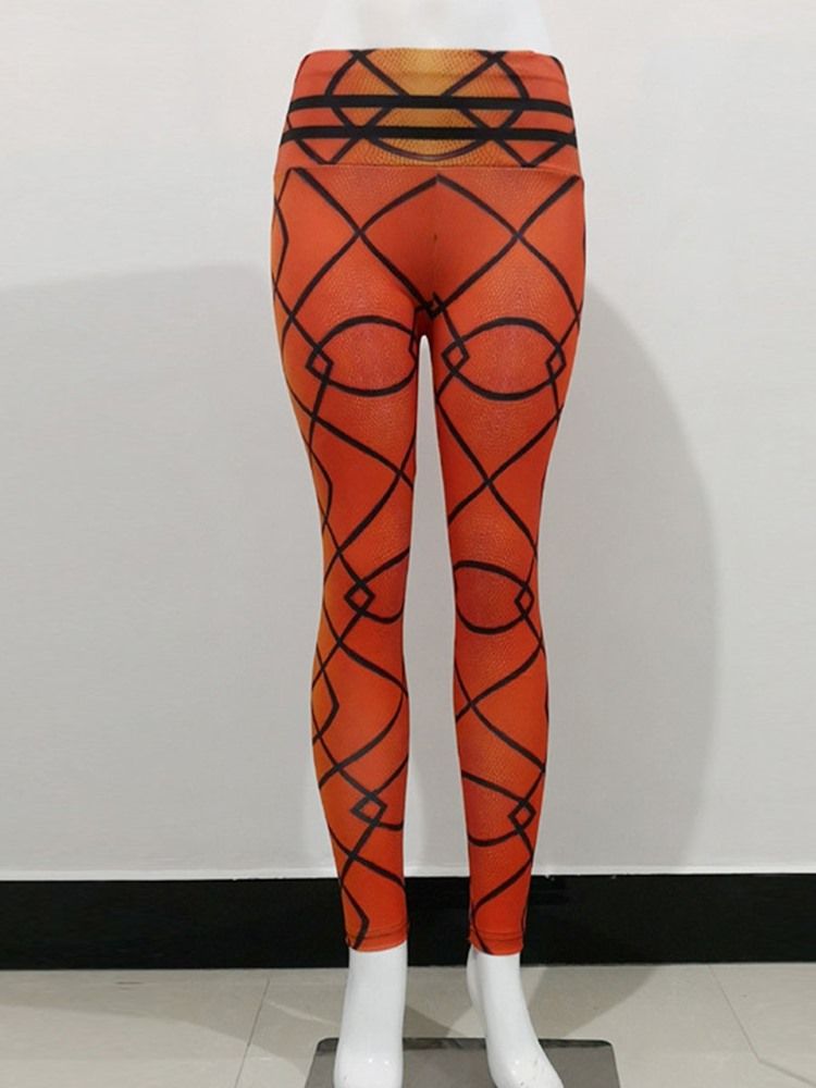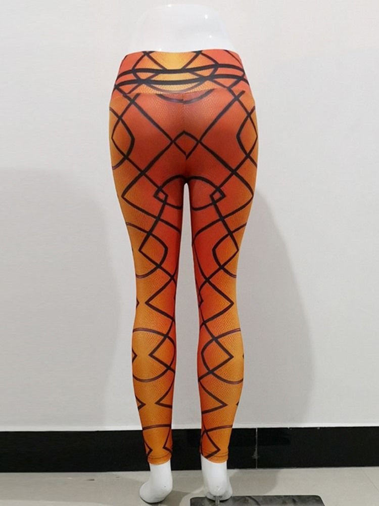 Dam Andas Geometriskt Polyester Print Running Full Length Yoga Byxor Hög Midja Tiktok Leggings