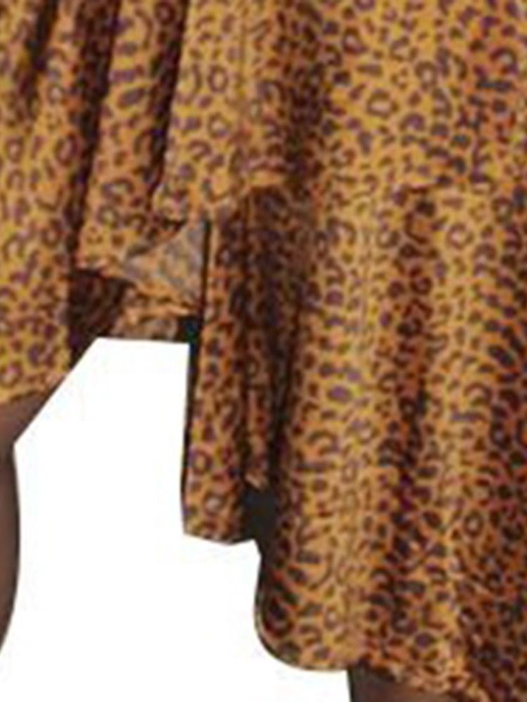 Dam Asymmetrisk Leopardmönstrad Midikalvad Kjol