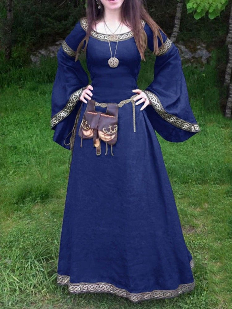 Dam Flare Ärm Expansion Print Ankel-längd Standard-midja Klänning