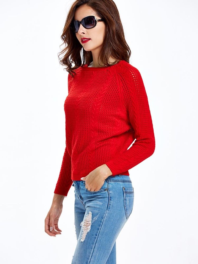 Dam I Enfärgad Ihålig Batwing Lösa Stickade Kläder