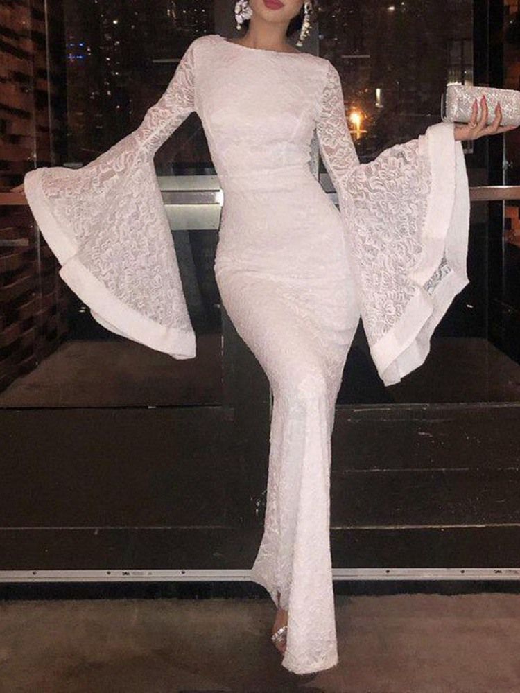 Dam Maxi-klänning Med Spetsflare Ärm Bodycon Cocktail Pullover