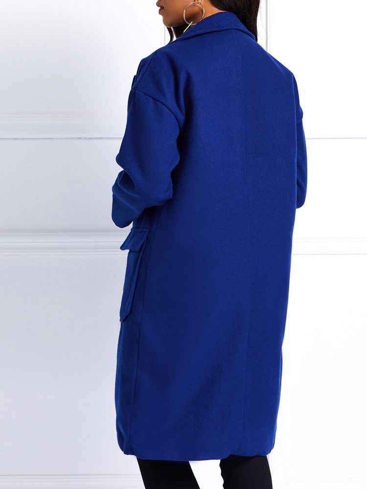 Dam Med En Knapp Rak Ficka Midlång Vinterrock
