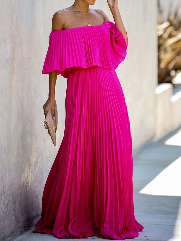 Dam Off-shoulder Golvlängd Trekvartärmad Plain Pullover Dress