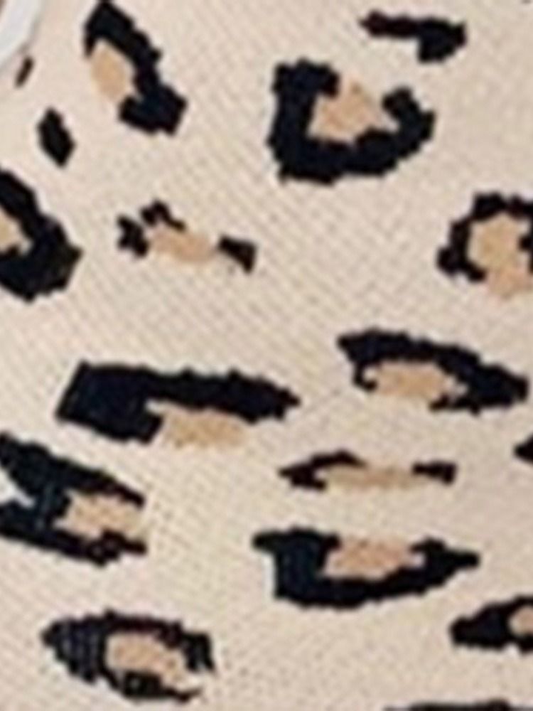 Dam Off Shoulder Ovanför Knätryck Leopard Regular Dress