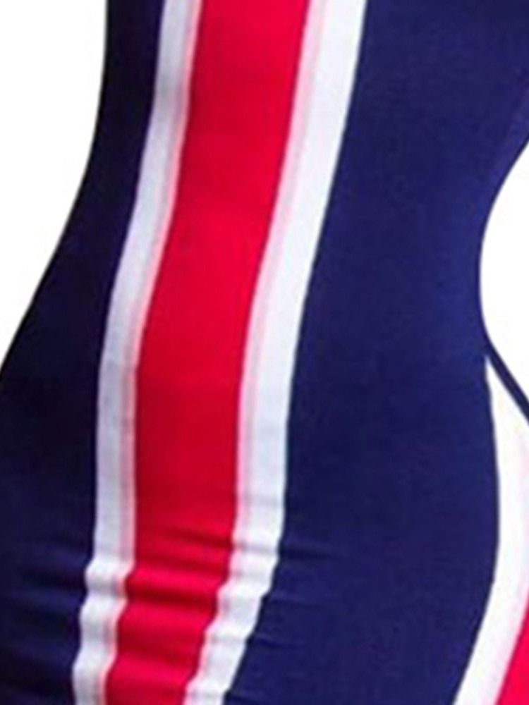Dam Randig Ärmlös Knälång Bodycon Axelbandslös Klänning