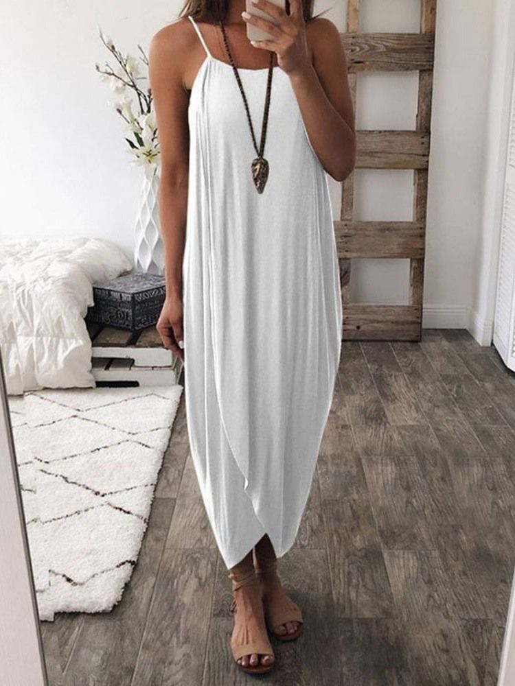 Damasymmetrisk Avslappnad Ärmlös Klänning I Mitten Av Vaden