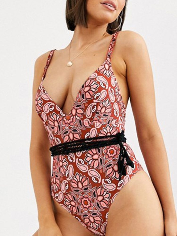Damblommor I Ett Stycke Färgblock Sexiga Badkläder
