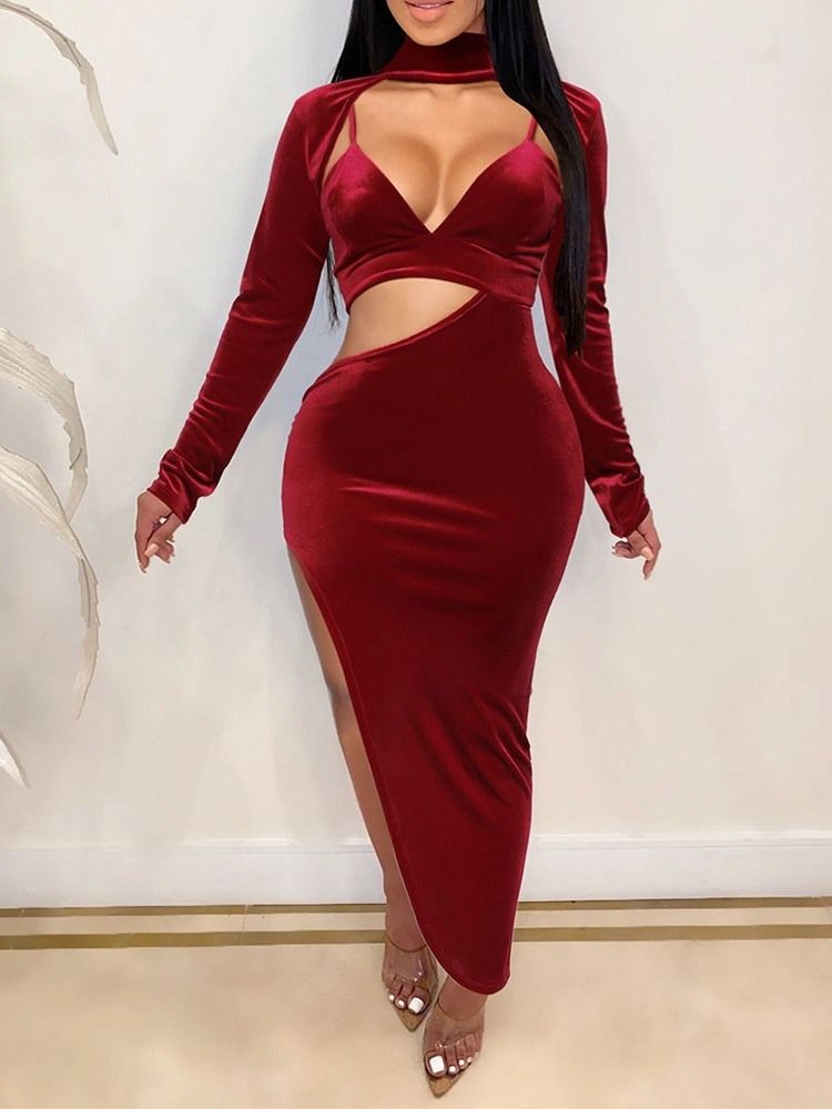Damklänning Med Ankel-längd Lång Ärm Split Enkel Tröja