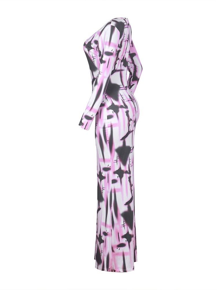 Dammanteltryck Med Tre Fjärdedelar Ärm Ankellängd Pullover Vanlig Klänning
