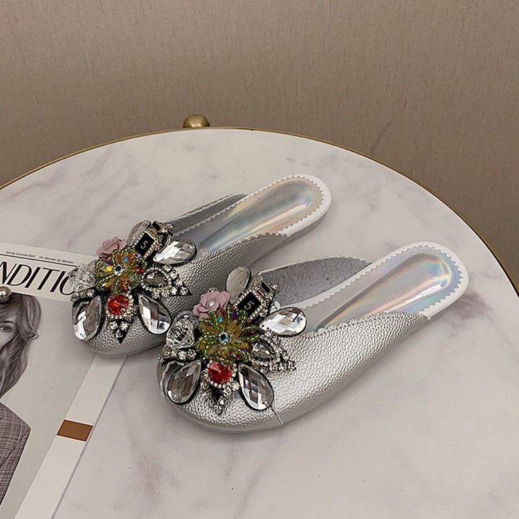 Damspänne Platt Med Avslappnad Tofflor Med Stängd Tå