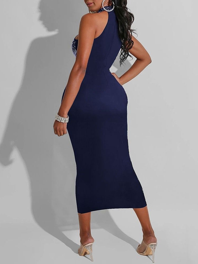 Diamond Mid-calf Ärmlös Sexig Tröja Damklänning