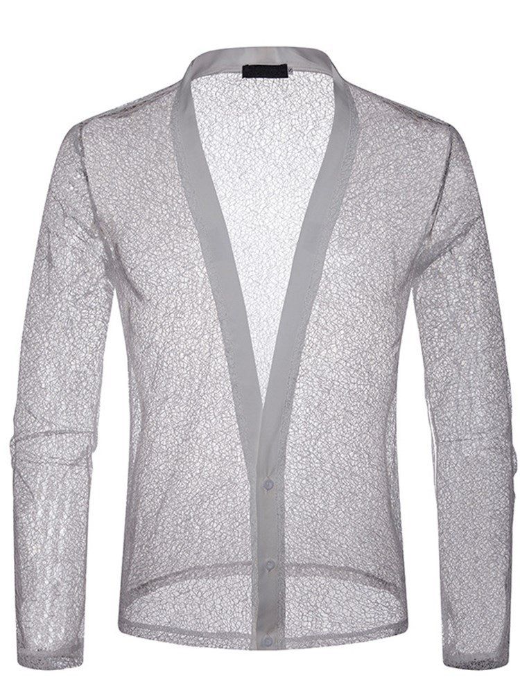 Djup V-ringad Genomskinlig Herr Sexig Fest Skjortor