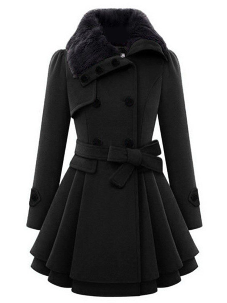 Dubbelknäppt Midilång Bältesrock För Kvinnor