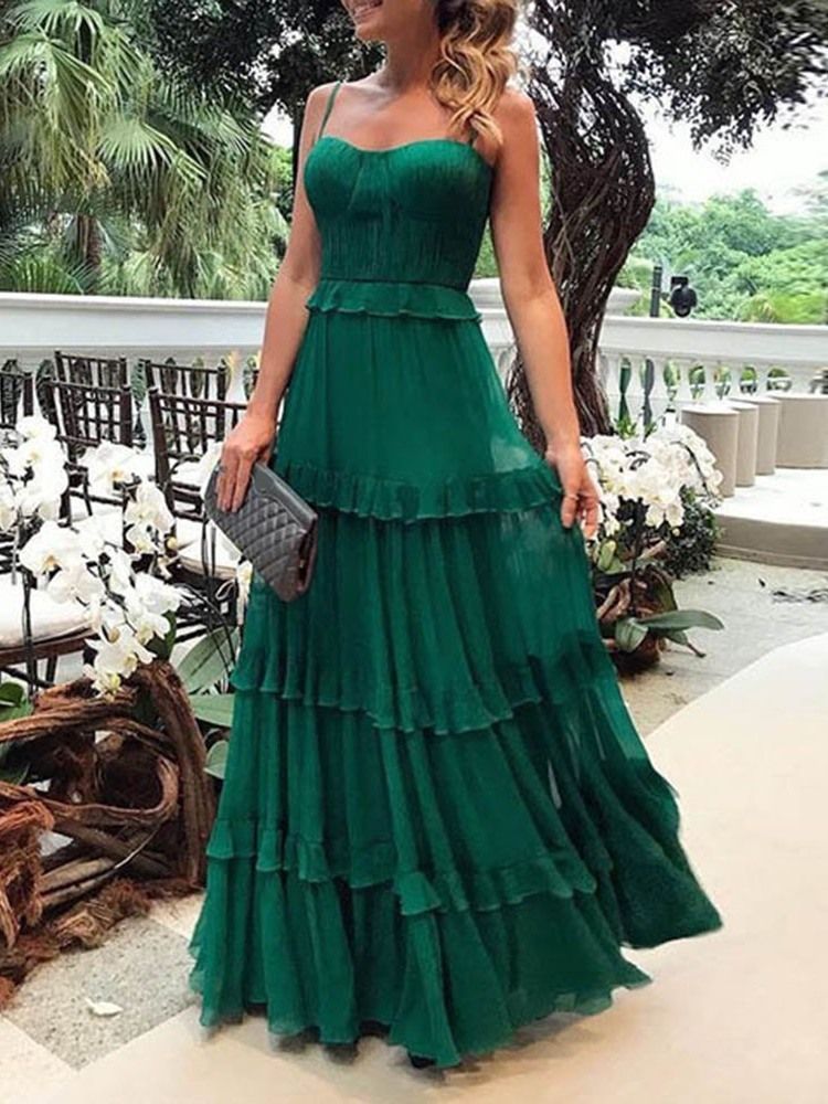 Falbala Ärmlös Golvlång A-linjeformad Damklänning