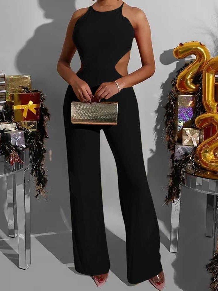 Fashion Backless Full Length Straight Slim Jumpsuit För Kvinnor