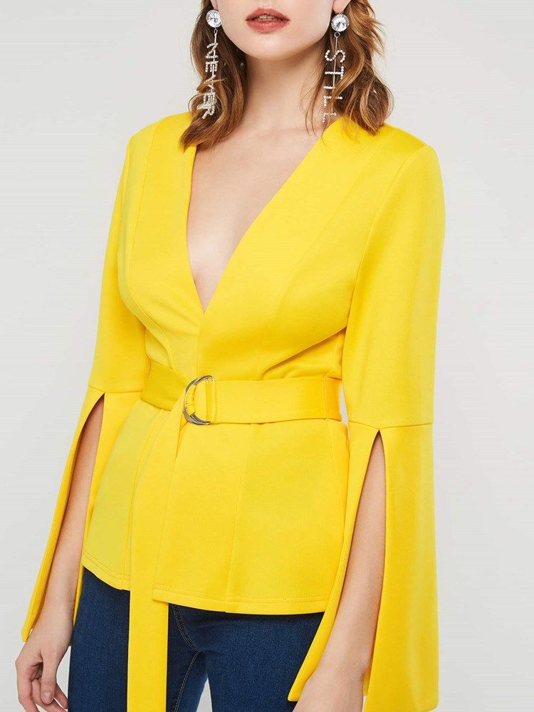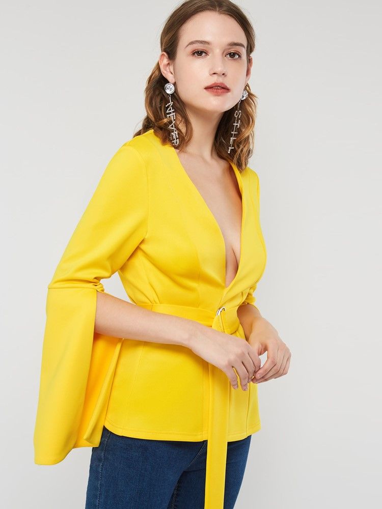Flare Ärm Slim Slim Lace-up Fall Standard Overrock