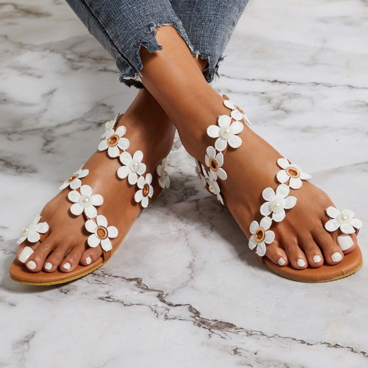 Floral Toe Ring Slip-on Dam Flat Sandaler