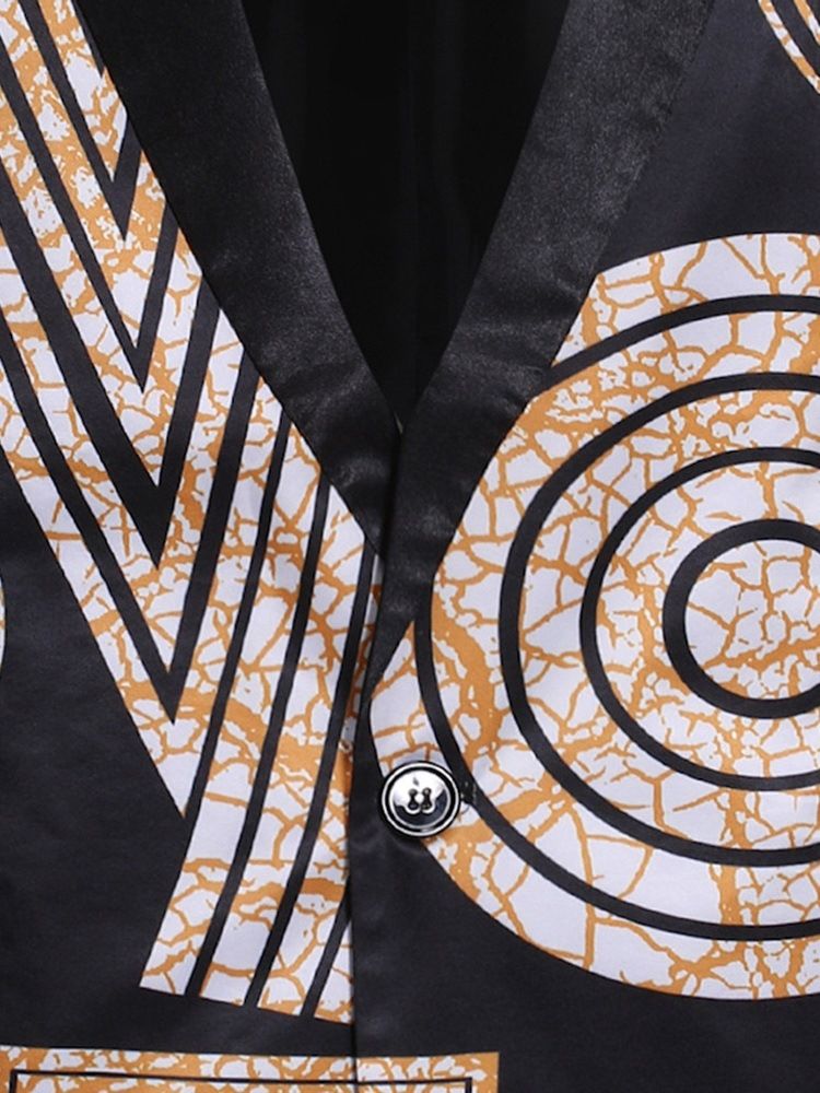 Geometriskt Tryck En Knapp Mens Casual Fritidskavaj