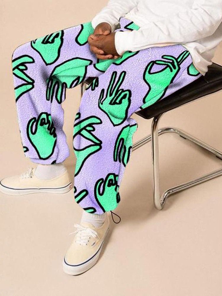 Geometriskt Tryck Mid Midja Snörning Casual Herrbyxor