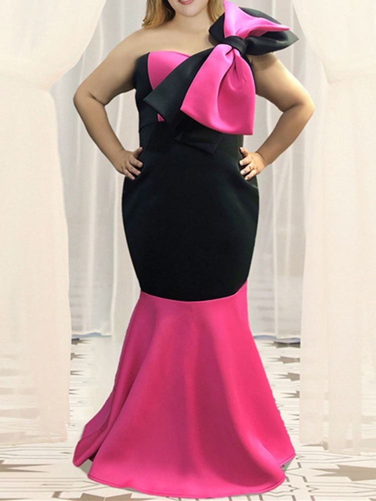 Golvlängd Bowknot Ärmlös Tröja Med Färgblock