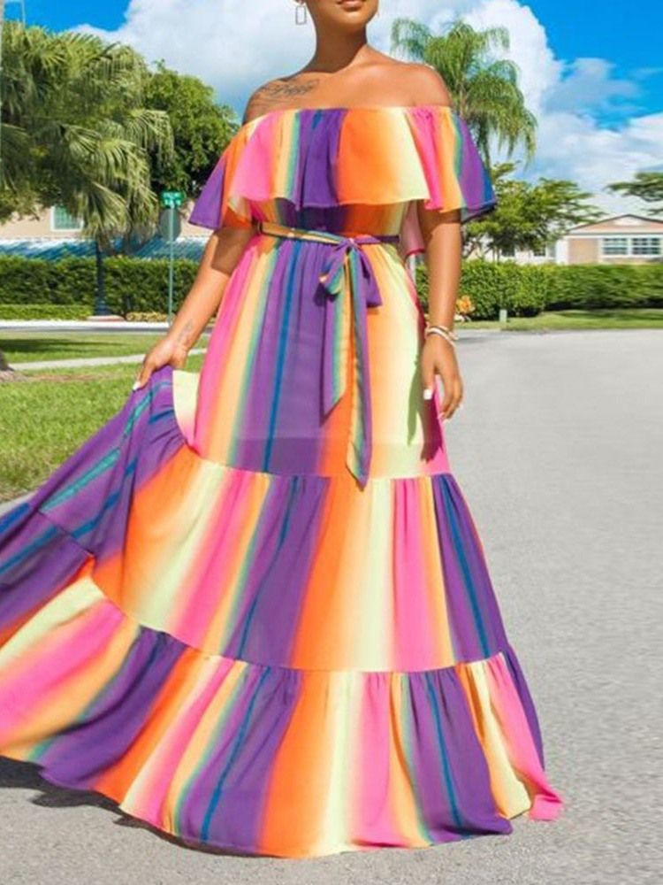 Golvlängd Halv Ärm Off Shoulder Casual A-line Damklänning