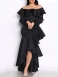 Golvlängd Plisserad Off Shoulder Cold Shoulder Mid Midja Damklänning
