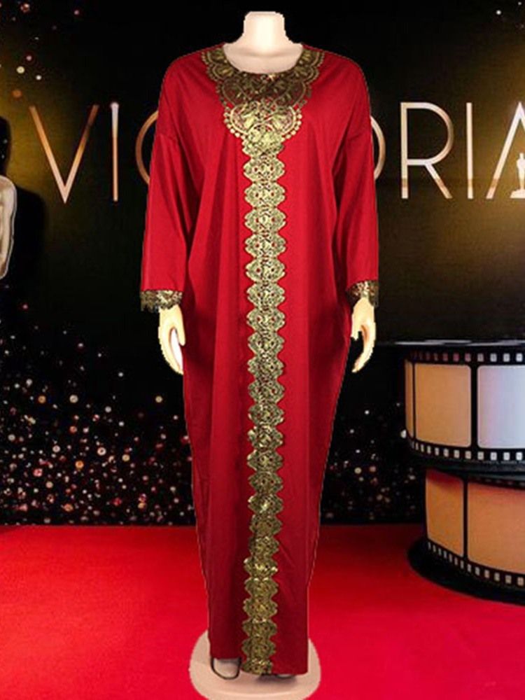 Golvlängd Rundhalsad Långärmad Tröja Geometrisk Damklänning