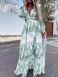 Golvlång Damtryck V-ringning Vanlig Växt Maxiklänning