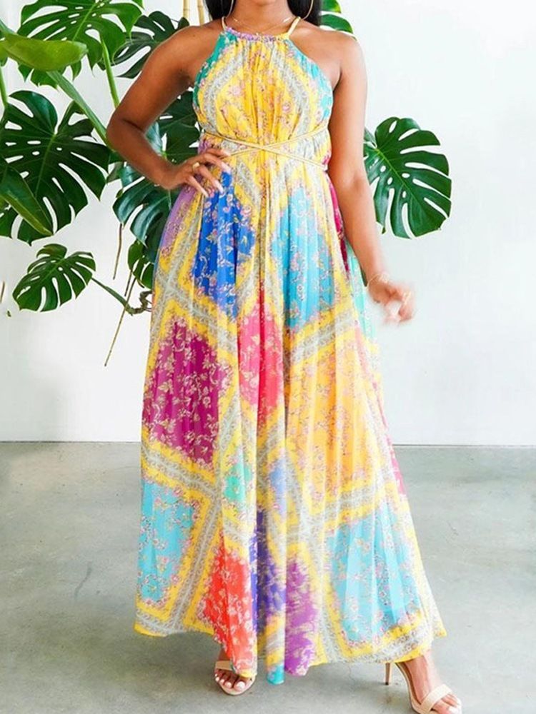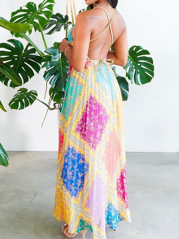 Golvlång Rygglös Ärmlös A-linje Söt Klänning För Kvinnor